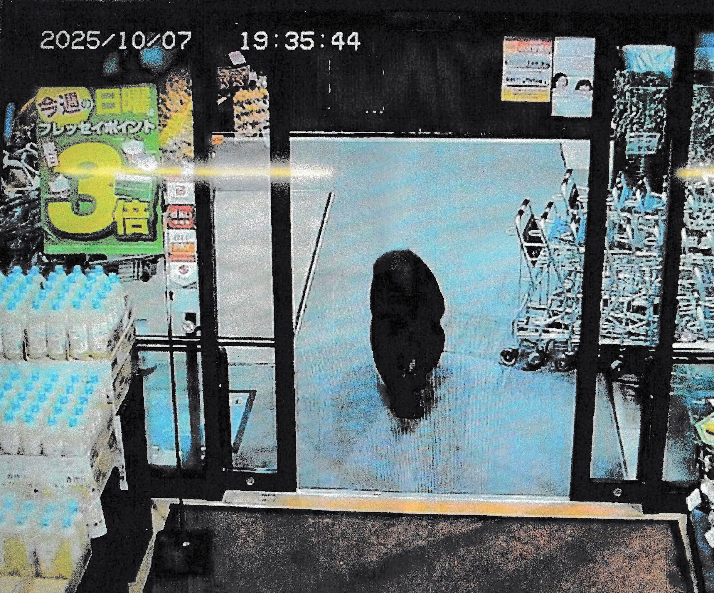 群馬縣沼田市的超市監控畫面顯示有一頭熊闖入店內。(該縣警方供圖)