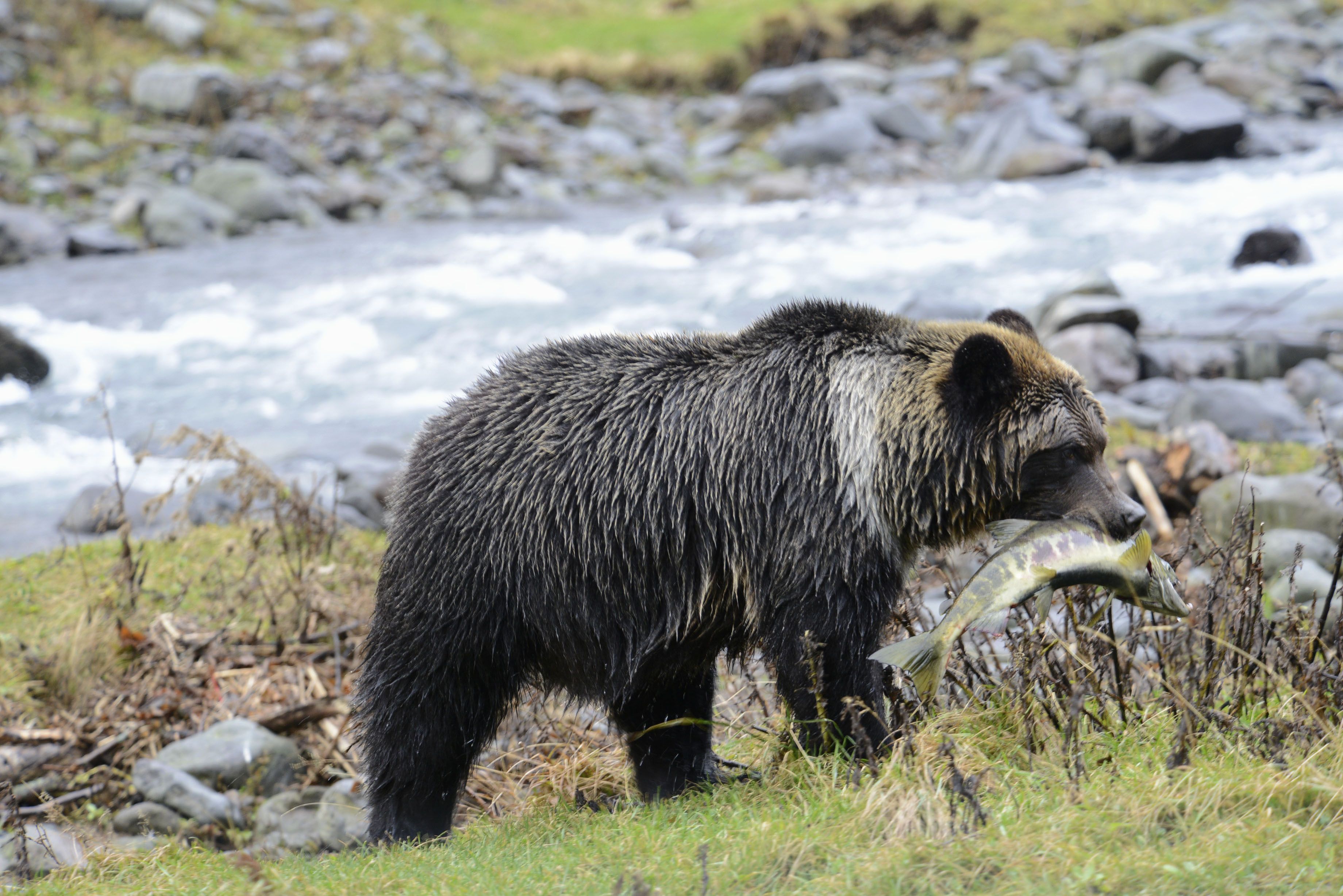 圖為在北海道知床半島捕鮭魚的棕熊。攝於2012年11月。(北海道大學研究生院教授坪田敏男供圖)