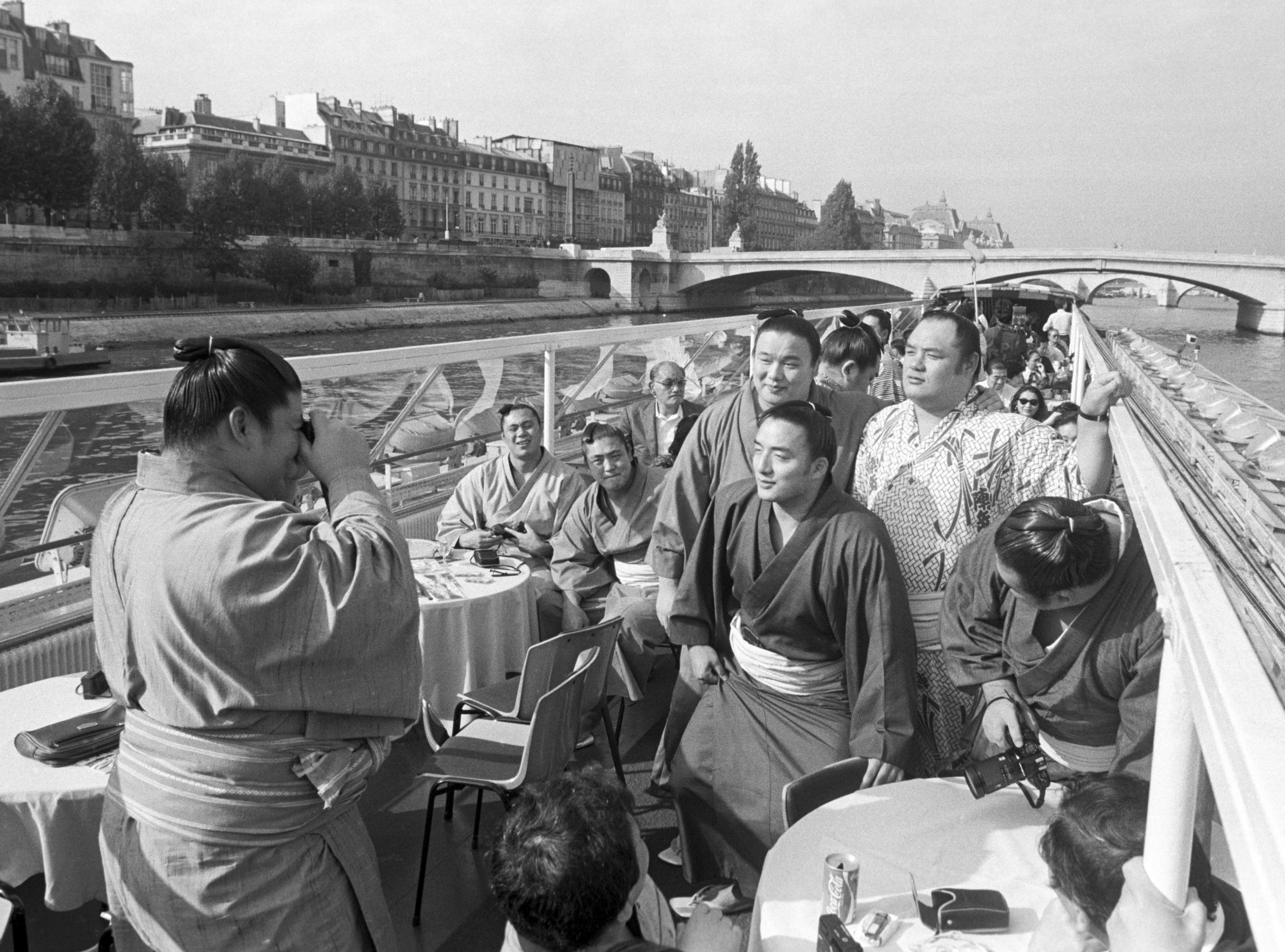 The Japan Sumo Association has staged 13 Grand Sumo Tournaments overseas since its first in 1965 in the Soviet Union. This page looks back on those exhibition tours with exclusive photographs by Kyodo News.