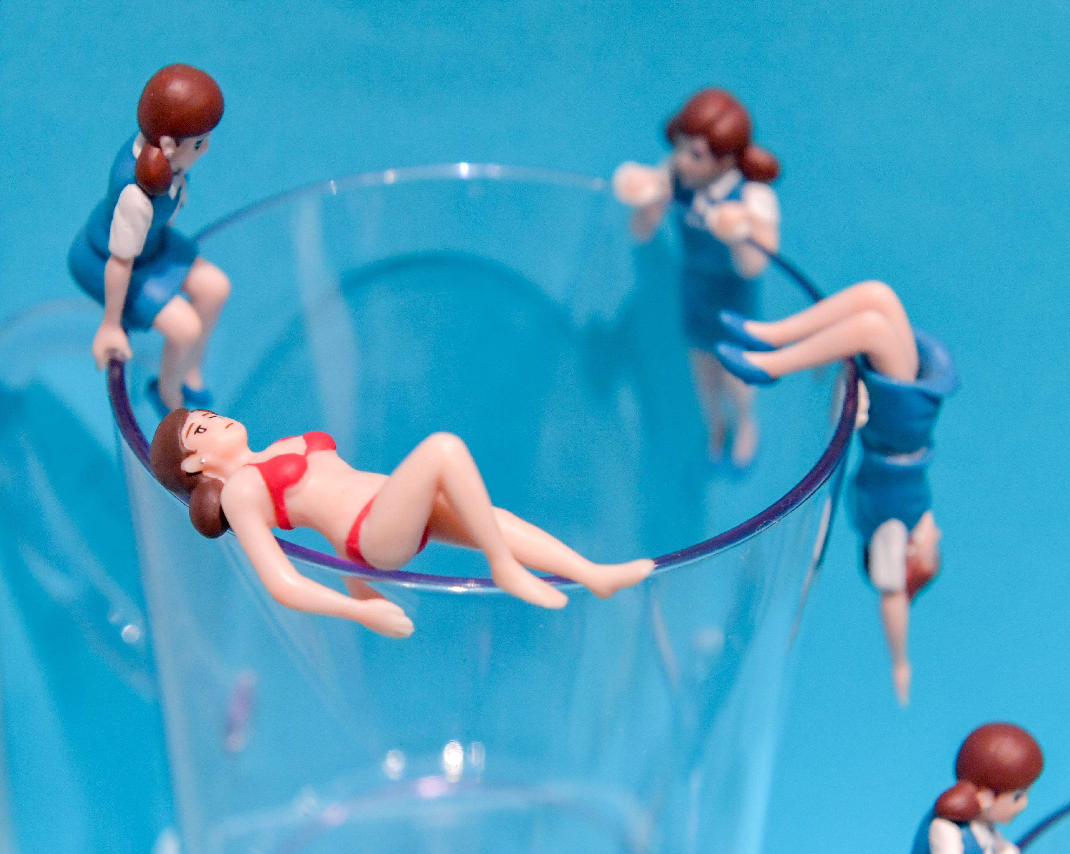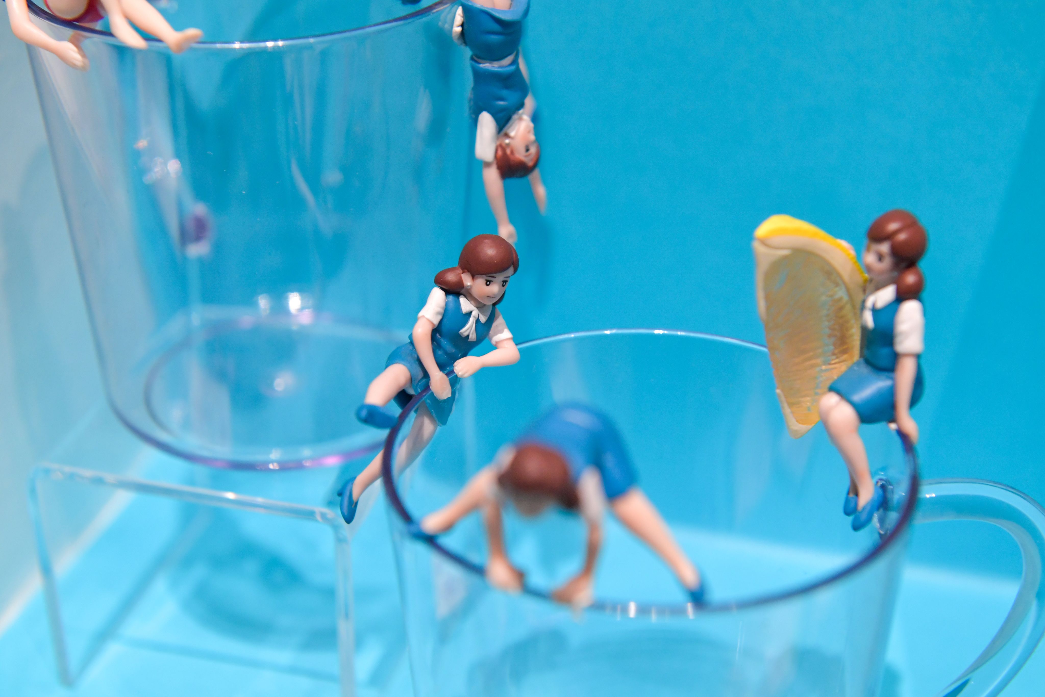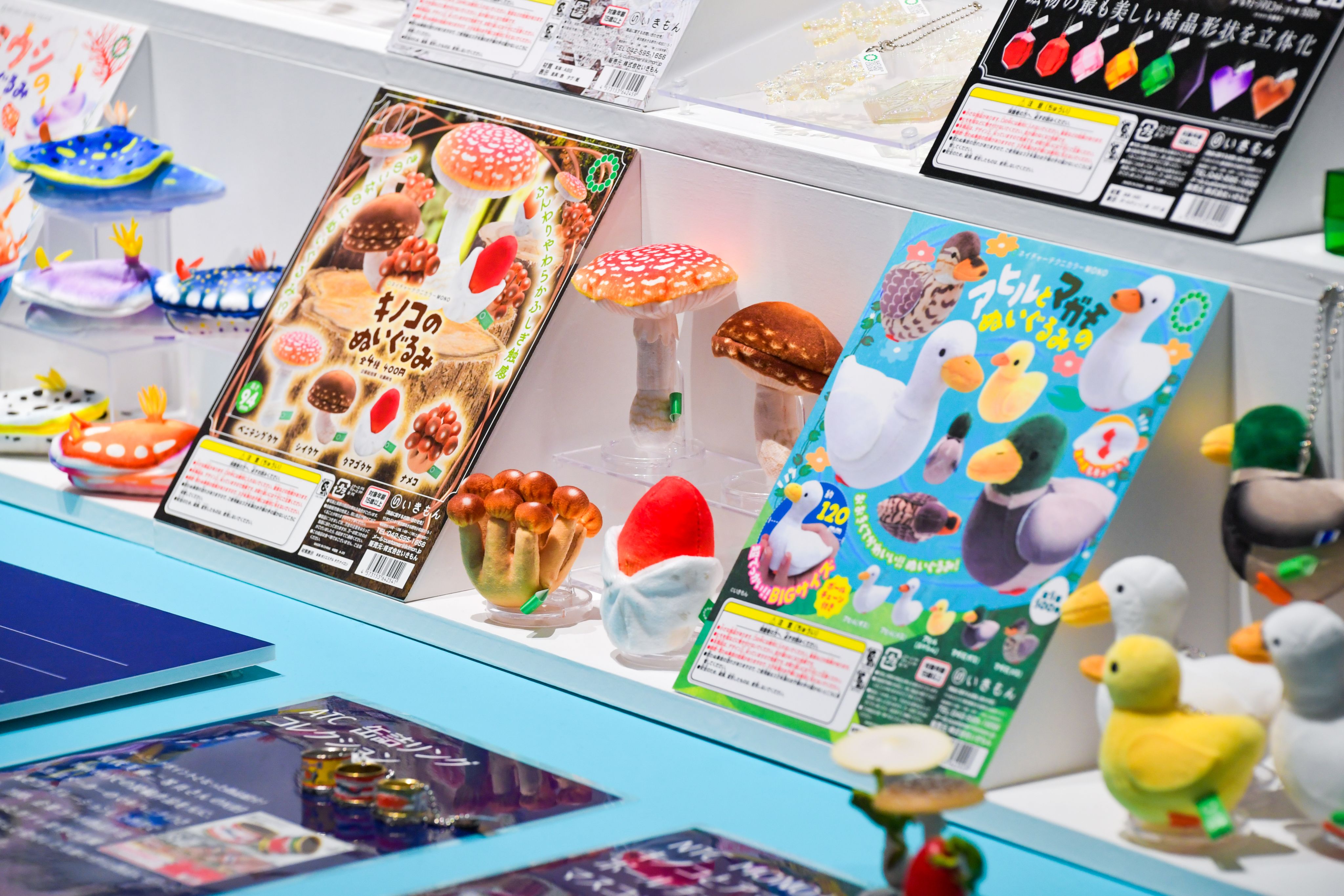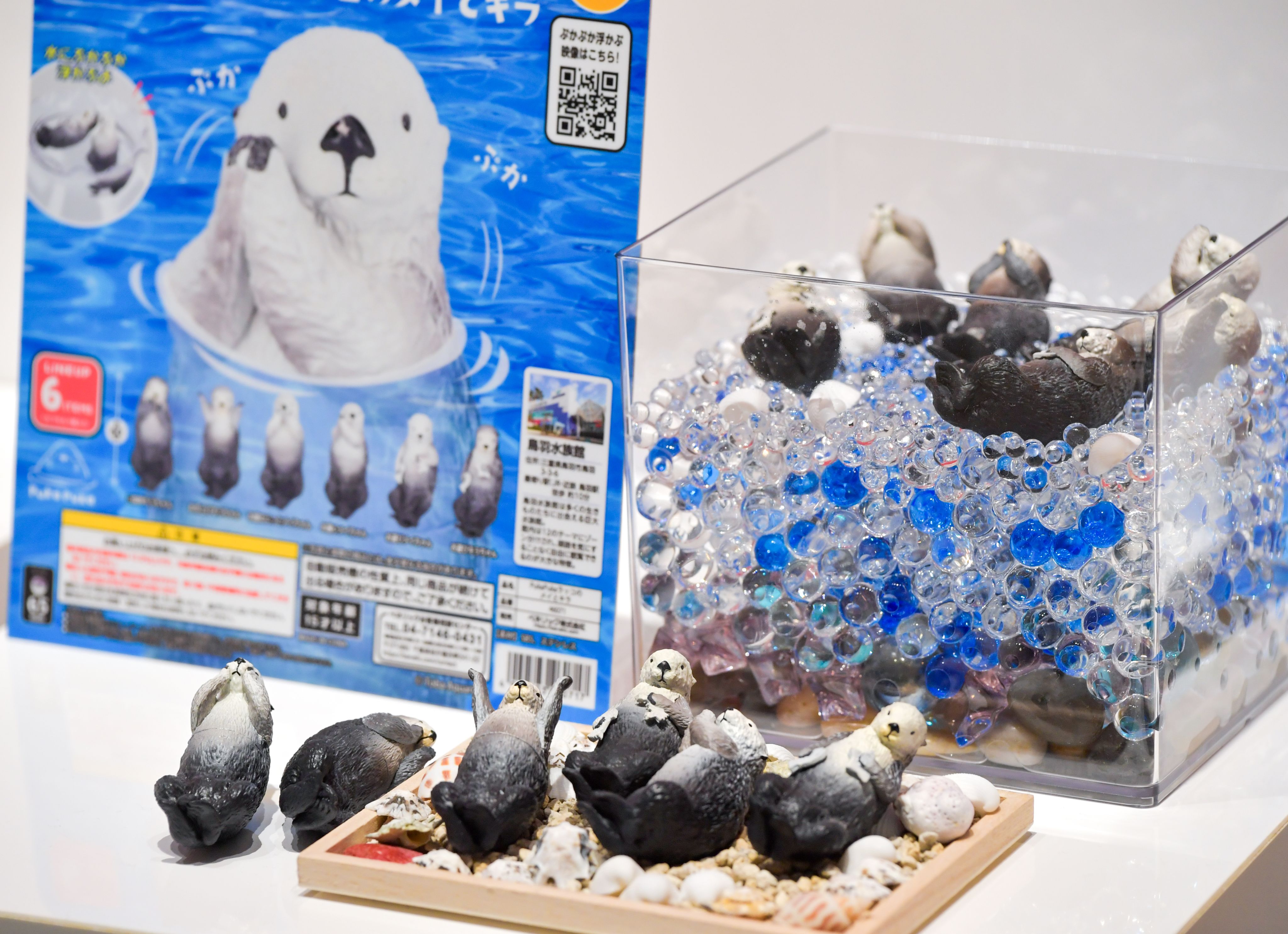 Displays include the Koppu no Fuchiko series from maker Kitan Club Co. Released in 2012, the popular series depicting an office lady perched on the edge of a mug marked a turning point for gacha gacha, according to Onoo. Where capsule toys were typically adapted from existing characters and products, the series was unique to gacha gacha and sparked an increase in makers producing toys exclusively for the genre.