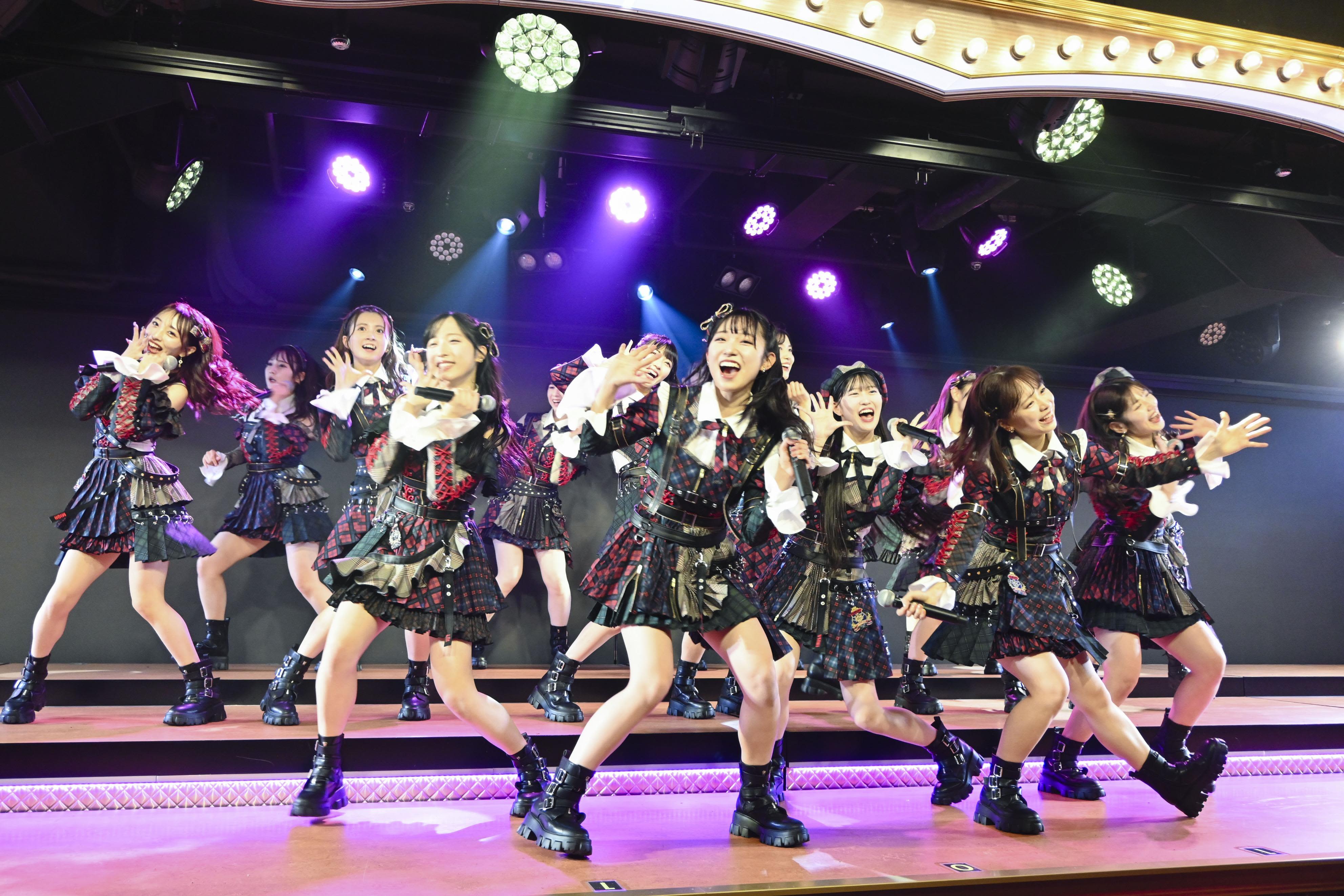 Members of AKB48 perform at their refurbished theater in Tokyo's Akihabara districted on Dec. 8, 2024. (Kyodo)