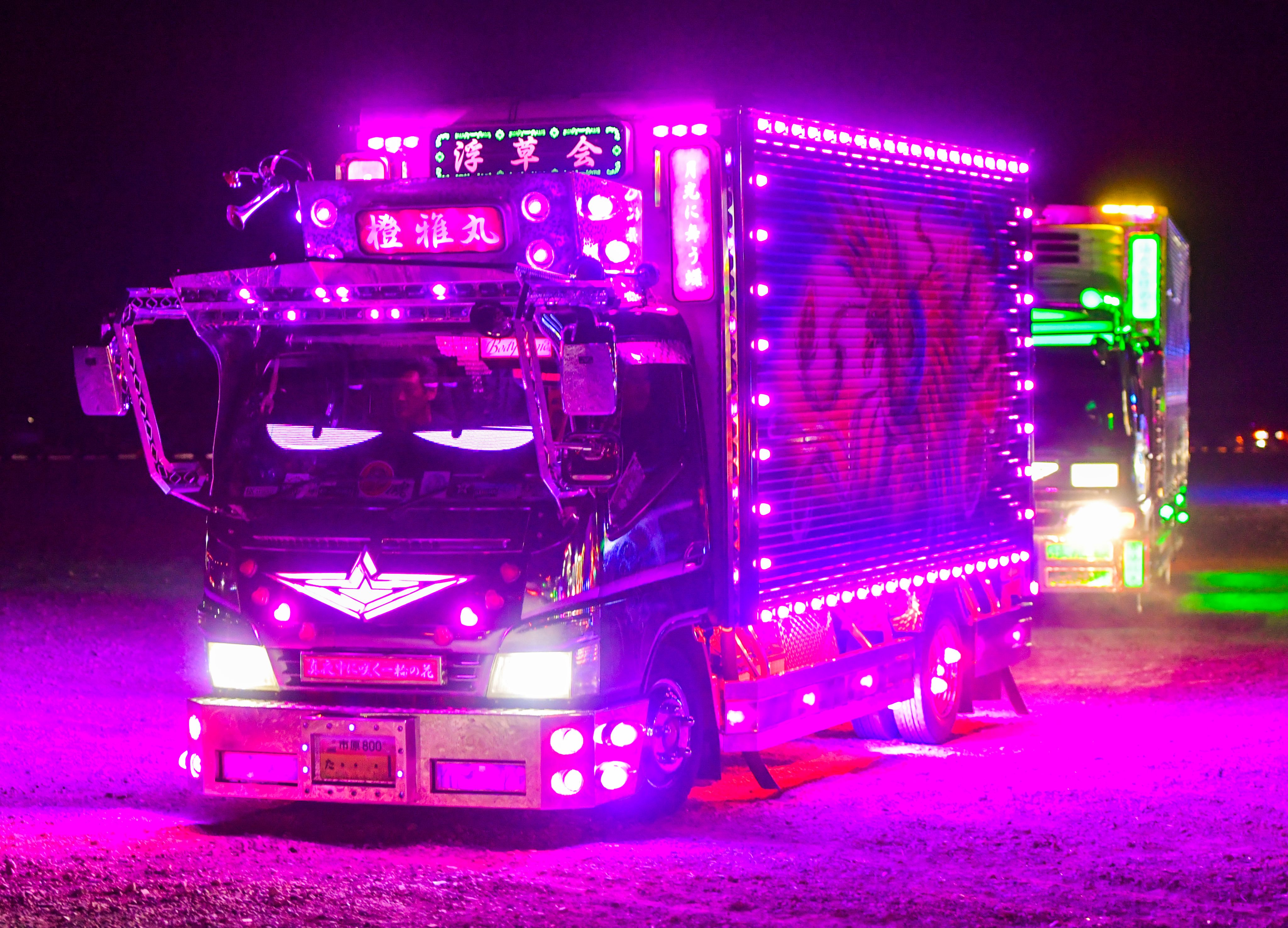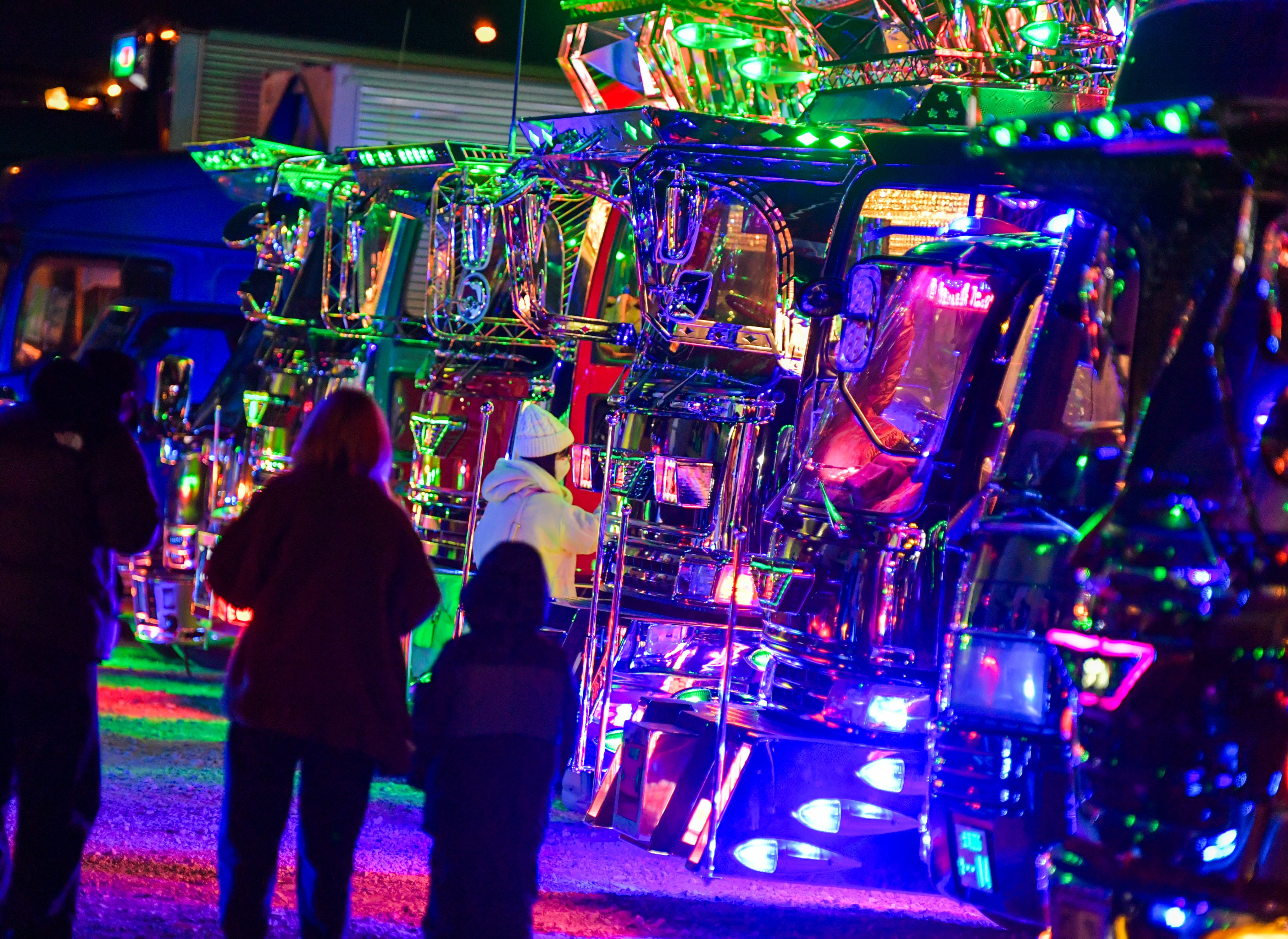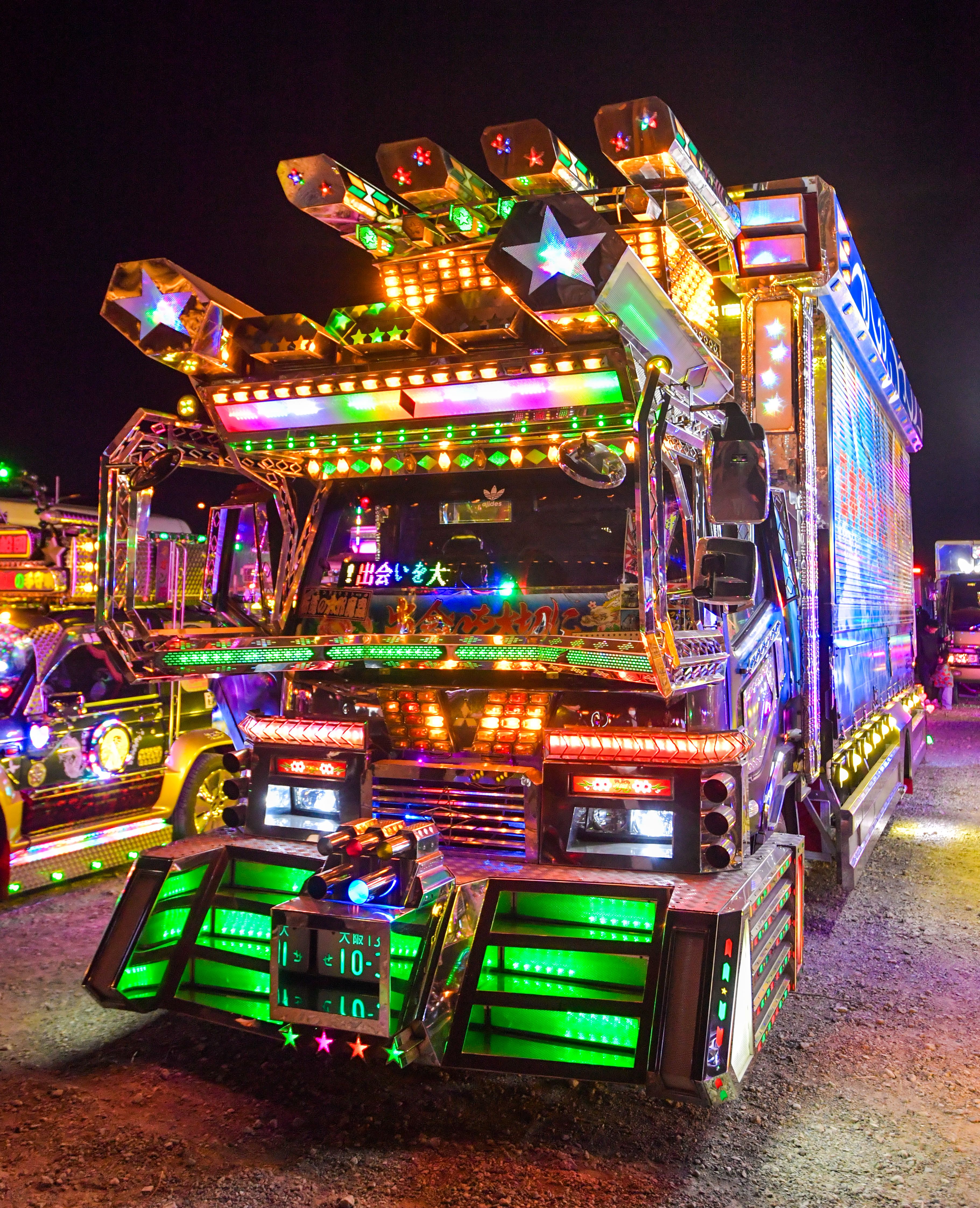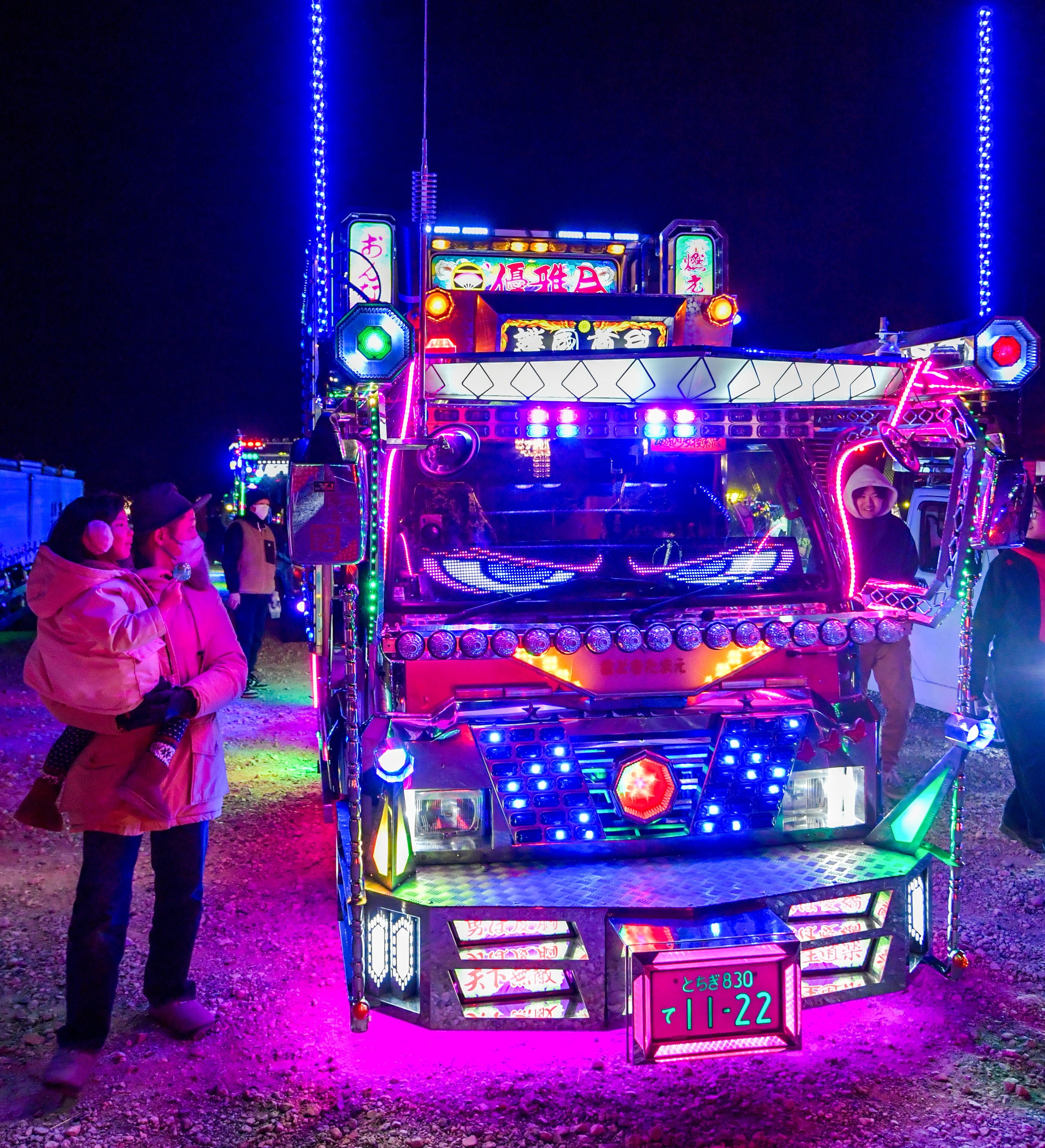 It was the country's largest assembly of decorated trucks, or "dekotora" as they are known in Japanese, which were fully illuminated in all their gaudy glory to the delight of thousands of attendees at a countdown event in Fukaya, Saitama Prefecture.