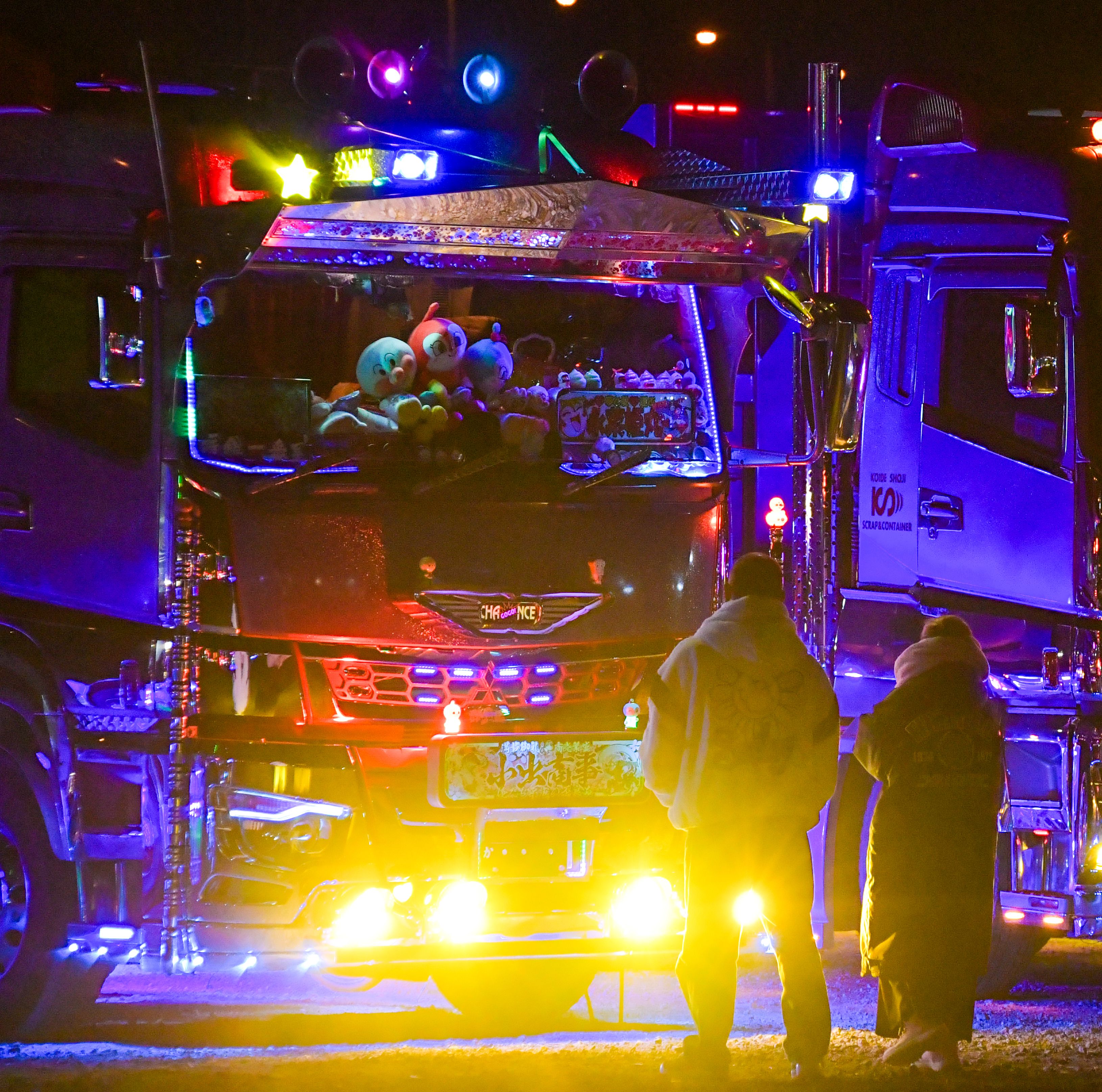 Japan's neon-decorated trucks dazzle for New Year's disaster relief