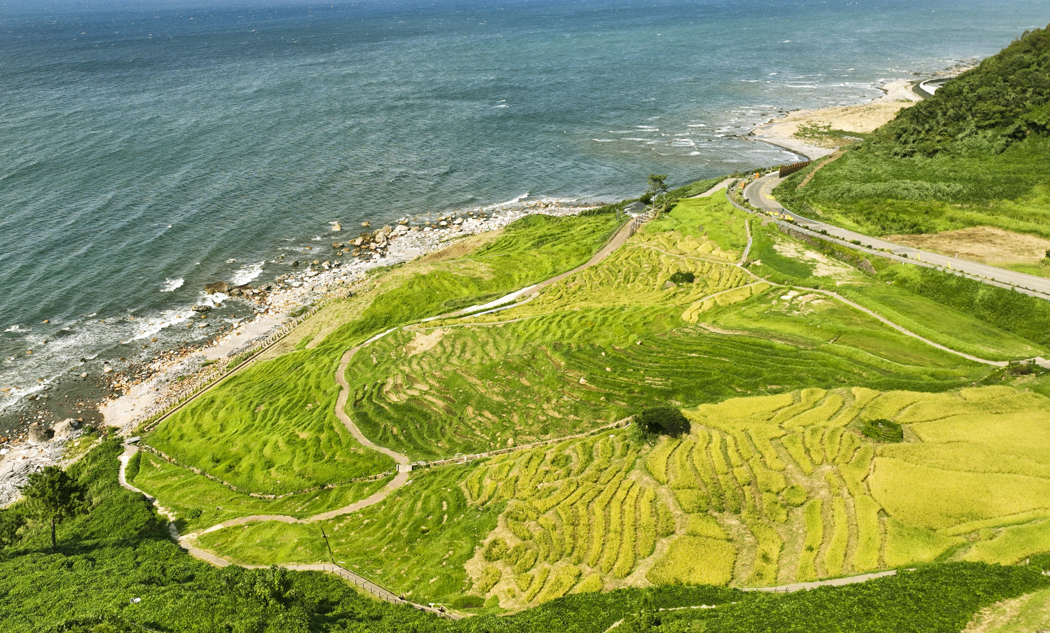 1004块梯田在海岸地带绵延开来。大型机械无法进入,耕作只能依靠人工。人们正在一点点修复因地震和暴雨而坍塌受损的田地,今年插秧种植的梯田约有250块。“千枚田”整修工作仍在继续。