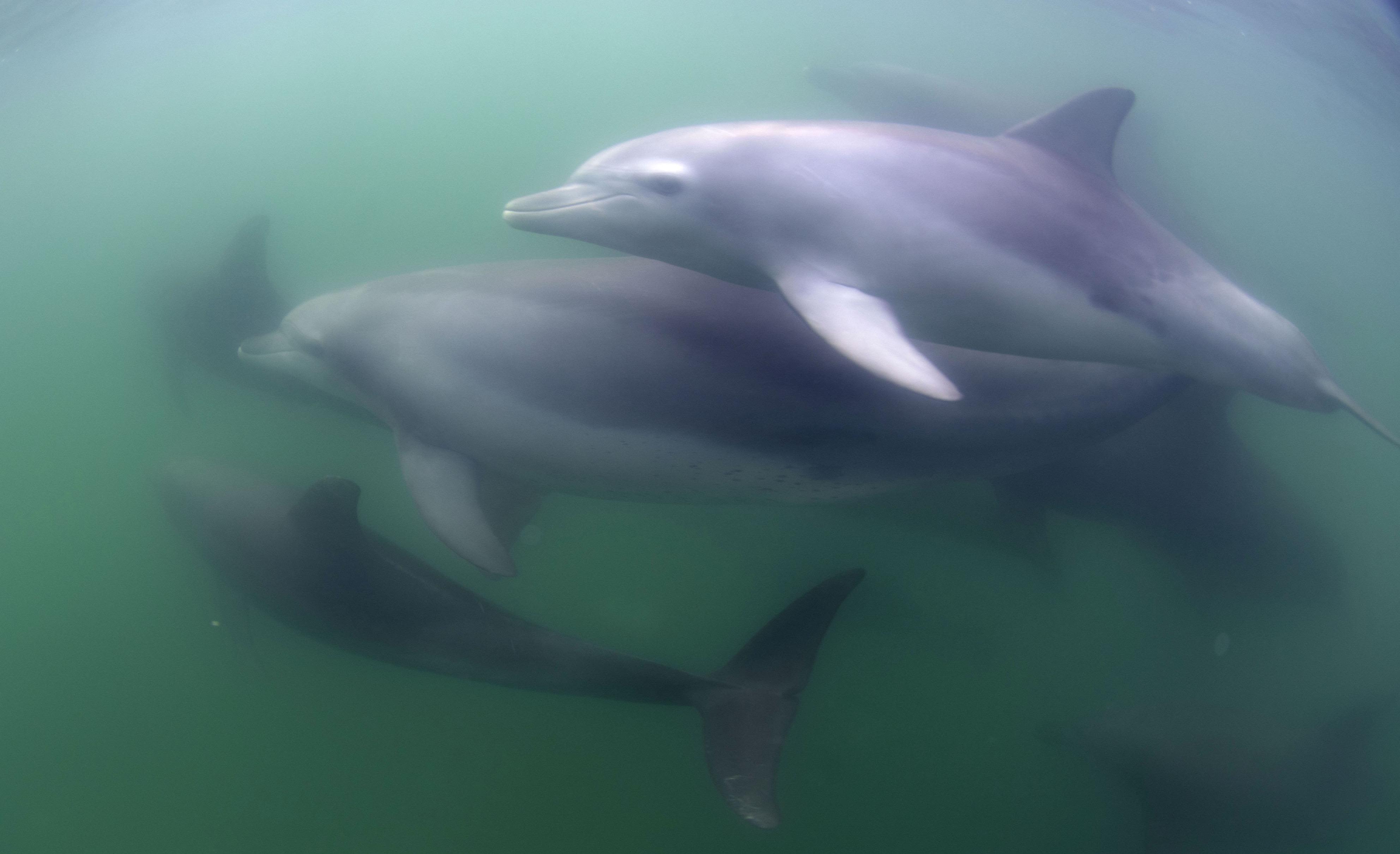 图为在能登岛附近海中畅游的野生宽吻海豚。2025年8月摄于石川县七尾市。