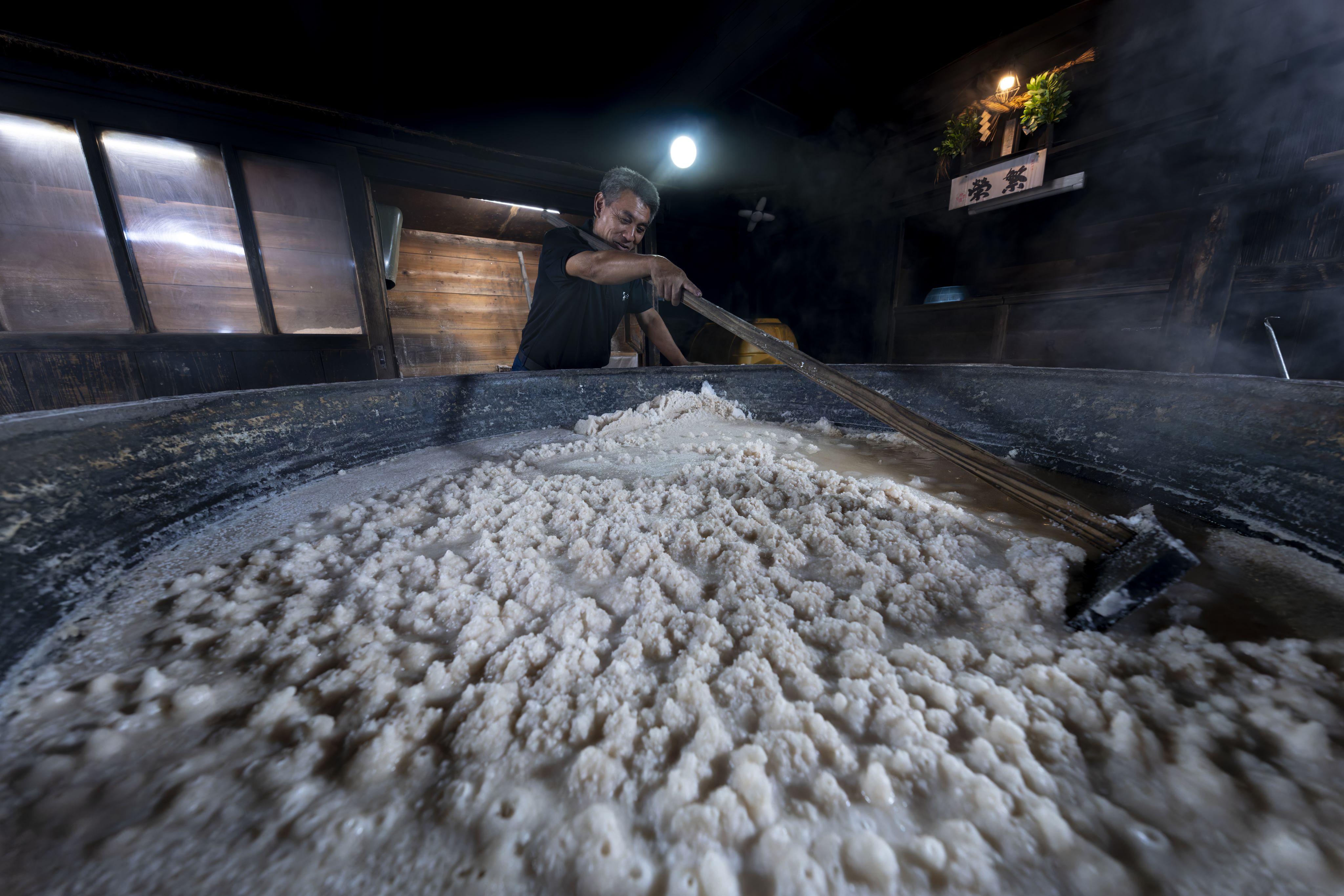 晚秋之夜,石川县珠洲市的制盐厂里,大锅内煮沸的盐水升腾起白色蒸汽,制盐师傅浦清次郎(57岁)正在专心作业。