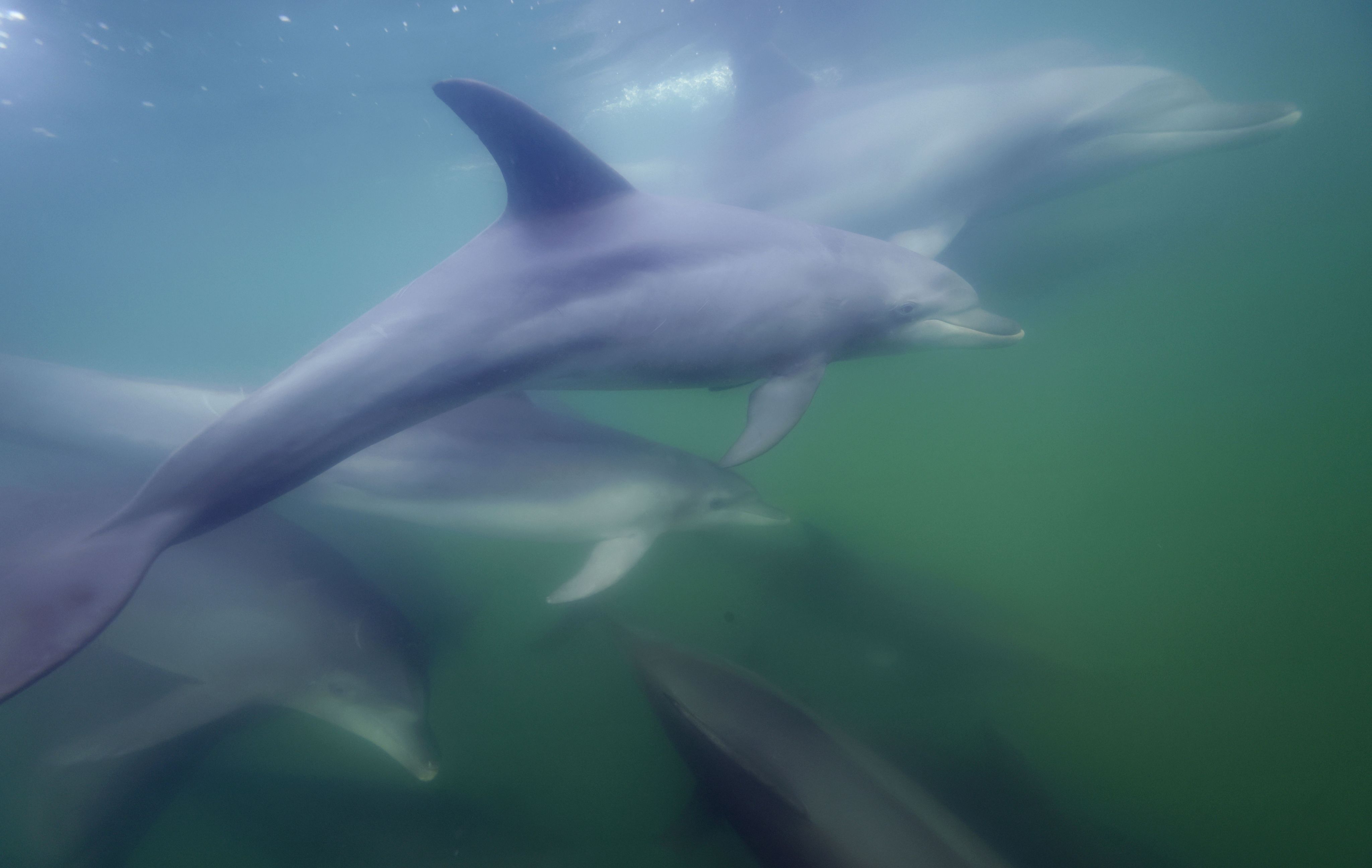 圖為在能登島附近海中暢遊的野生寬吻海豚。2025年8月攝於石川縣七尾市。