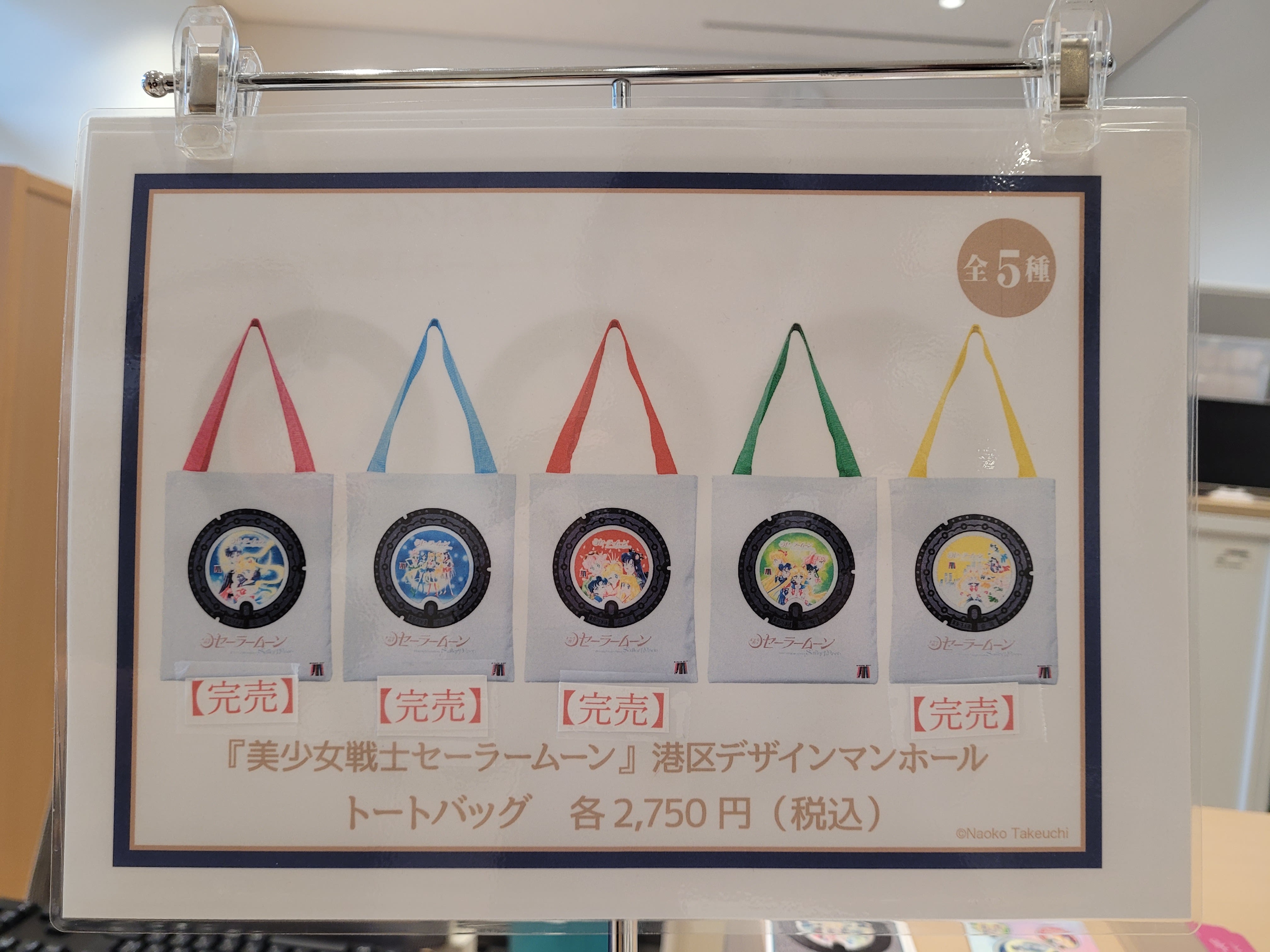 2025年12月8日,港區旅遊資訊中心銷售的「美少女戰士 Sailor Moon」限定款托特包大多售罄。(共同社)