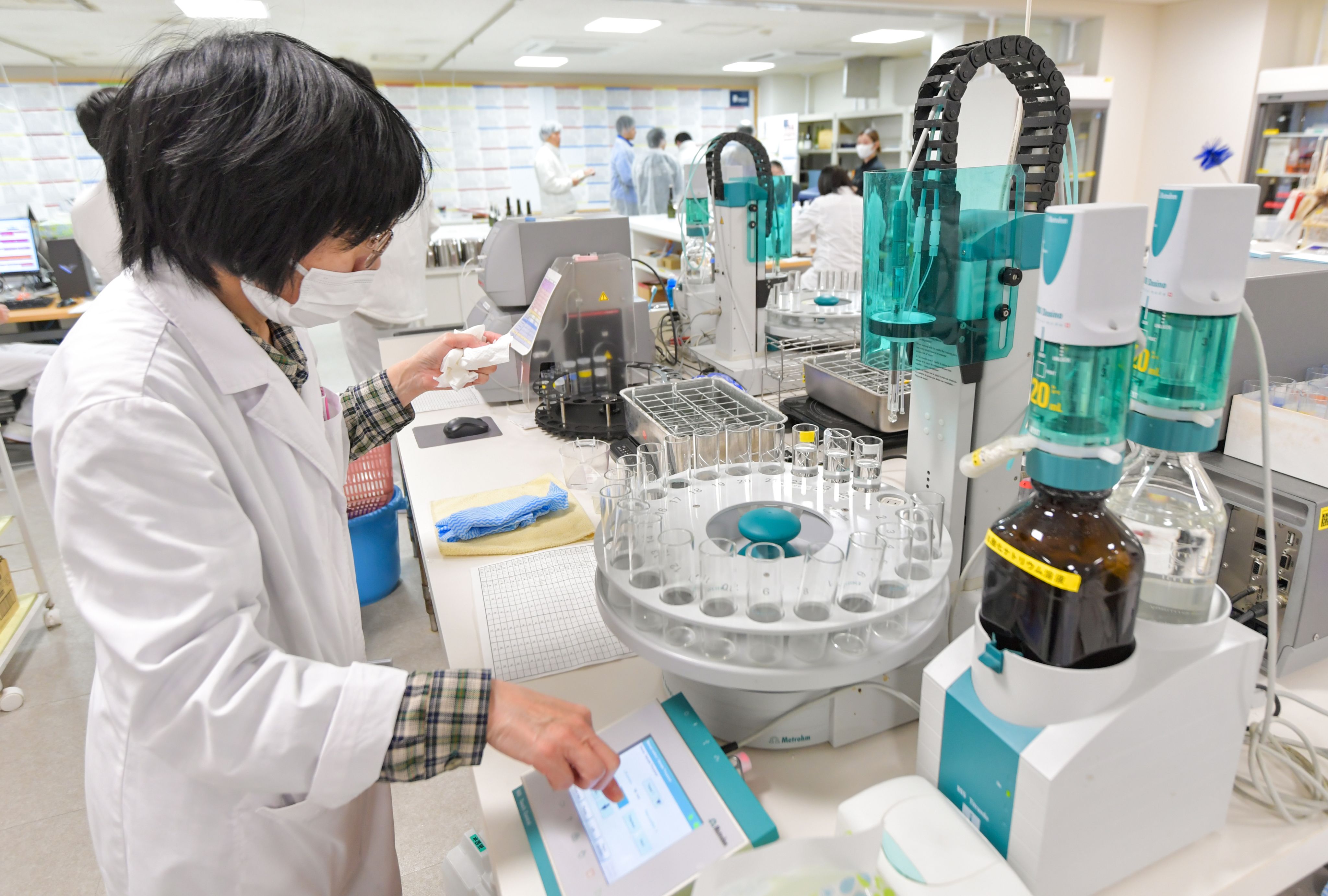 Inside the main brewing facility in Iwakuni, the company favors an approach of innovation over tradition. There is no veteran "toji," or master brewer. Instead, a young crew of brewers is largely focused on making junmai daiginjo sake. In the brewery’s analysis room, staff in lab coats carry out tests and analyze data.