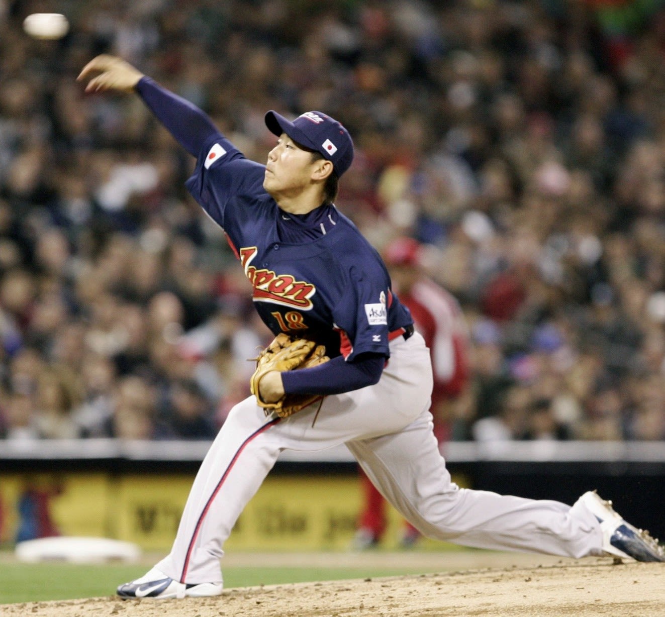 松坂大輔在與古巴隊的決賽中擔任日本隊先發投手。2006年3月20日攝於培多克球場。(共同社)