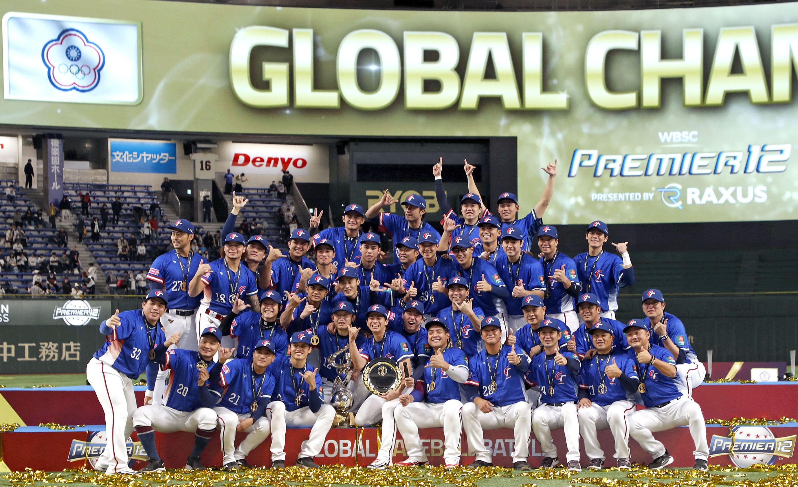 圖為在「世界棒球12強賽」中奪冠的中華台北隊。2024年11月24日攝於東京巨蛋。(共同社)